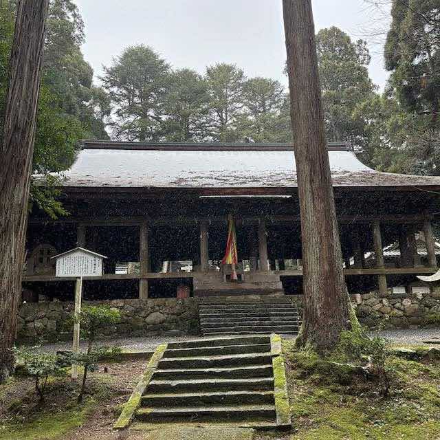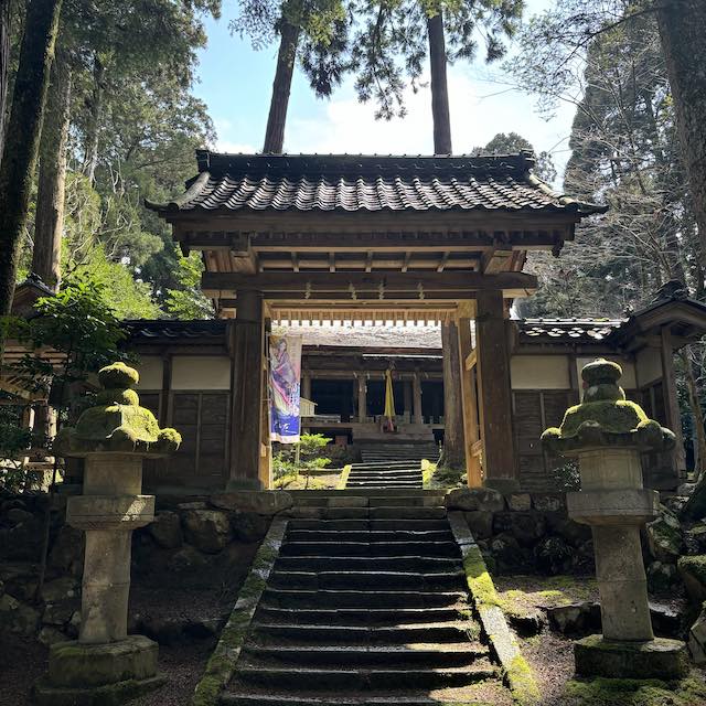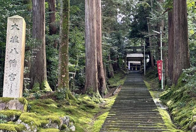 2024年3月。北陸新幹線が敦賀まで延伸した春、越前市にある大塩八幡宮を再び訪れました。 1月には時間が足りず立ち寄れなかった場所でしたが、今回は苔むした石段を上り、木立に囲まれた参道の先へ。舞台のように開かれた拝殿と、森に満ちる静けさが心に残る参拝となりました。