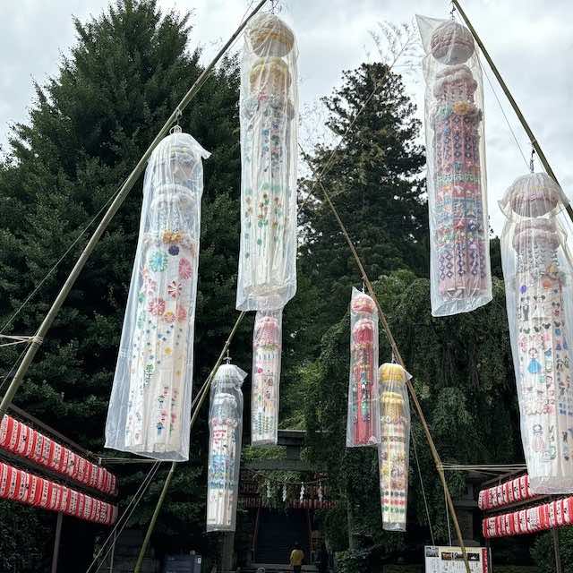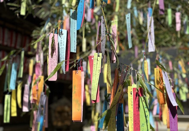 境内では、参拝者が願いを込めた短冊が風に揺れ、七夕飾りがとても印象的でした。