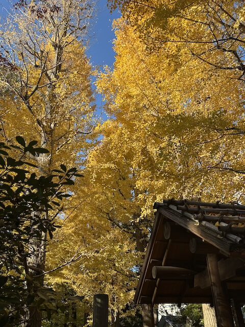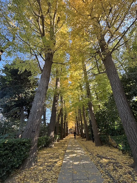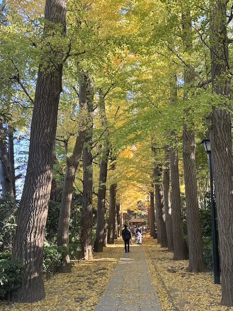 公園の入り口では、美しい銀杏並木が出迎えてくれます。緑から黄色へと移り変わる並木道は、大田黒公園を象徴する風景のひとつです。