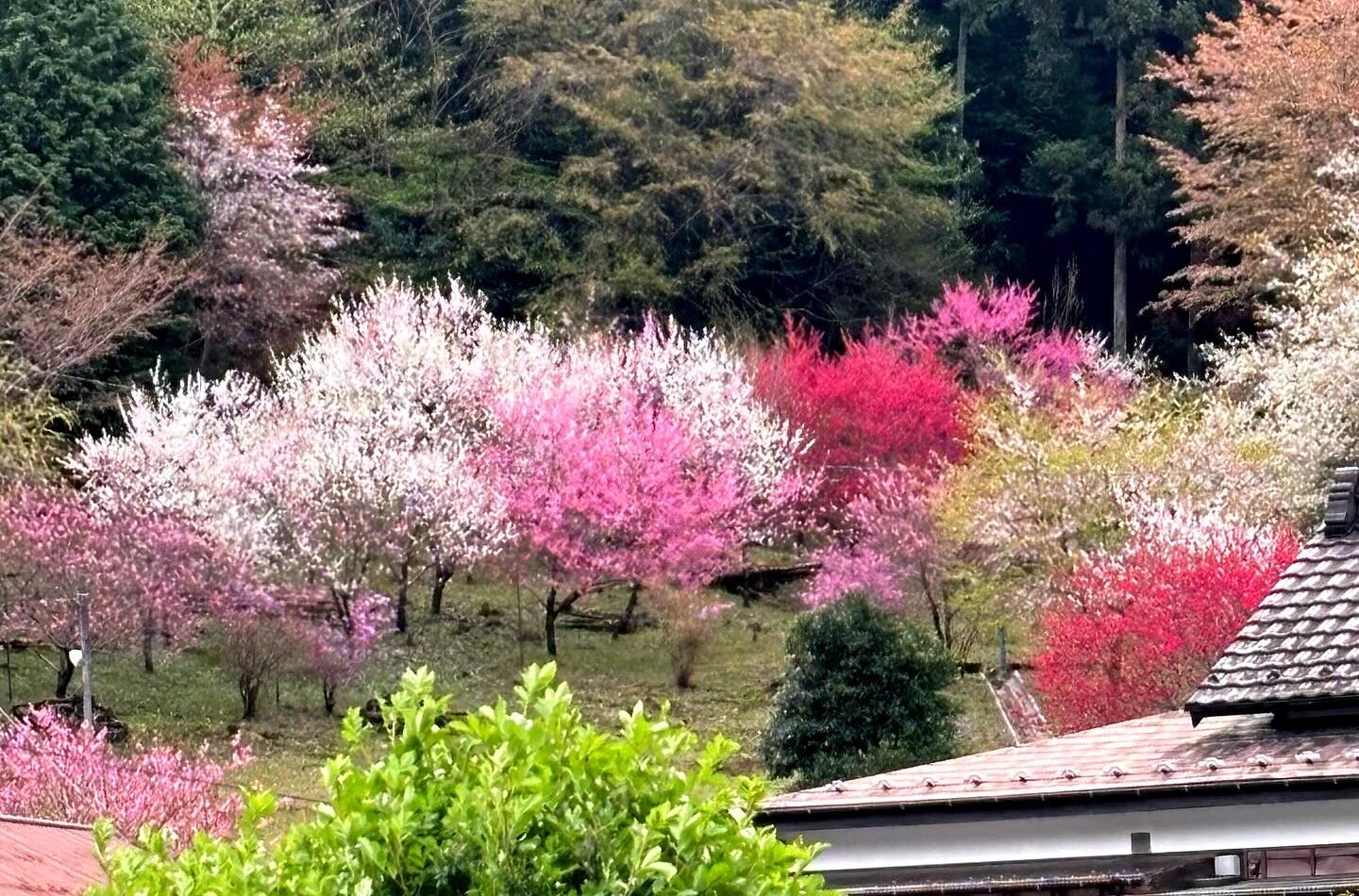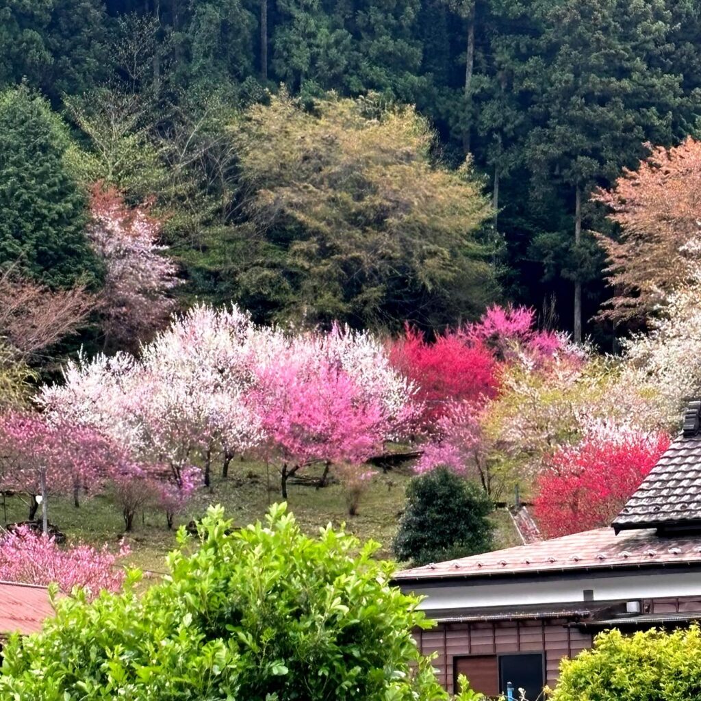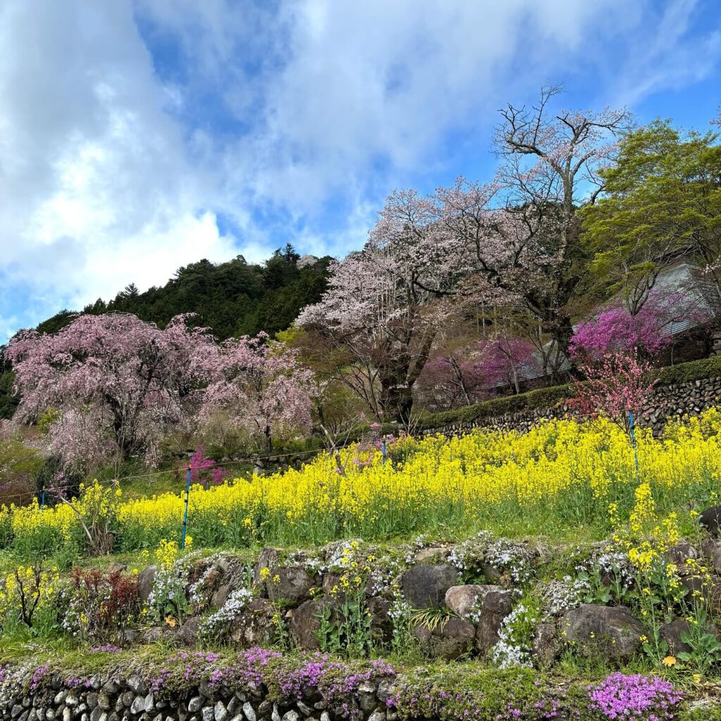 訪れた日は見頃ピークから少し外れていましたが、それでも十分に癒される光景でした。桜やツツジの色合いが里山全体を優しく包み、春の静けさを楽しめました。