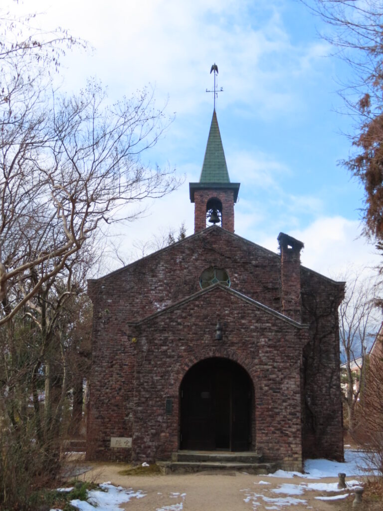 今回は冬の訪問だったため、蔦が絡まる姿や紅葉の季節の風景は見られませんでしたが、薄く雪化粧した煉瓦の建物もまた趣がありました。