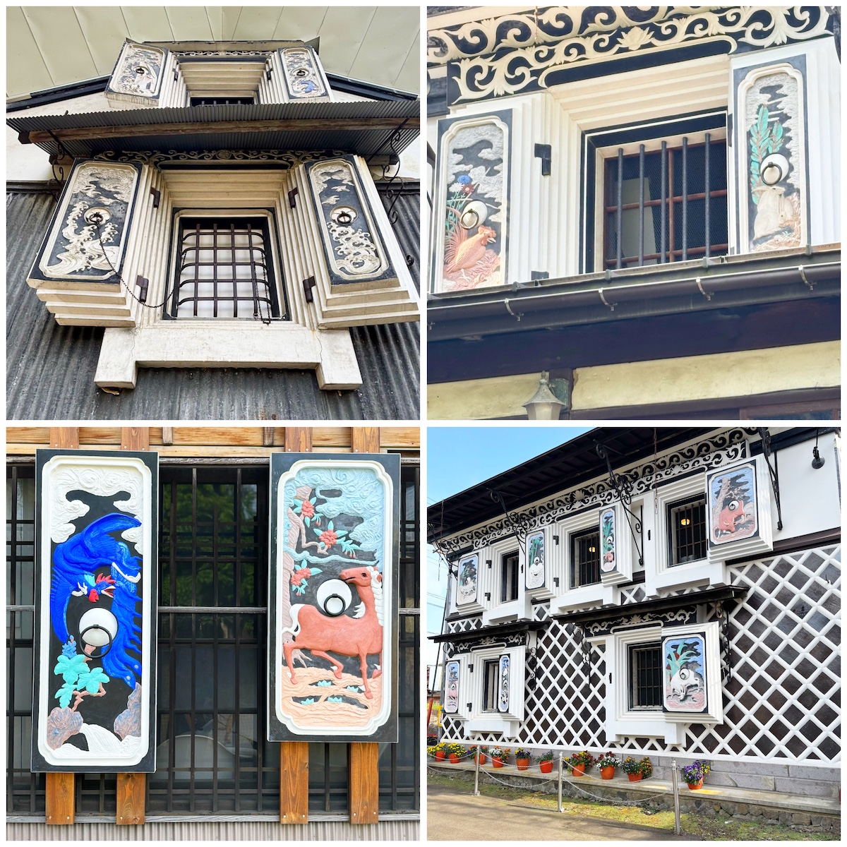 中でも、色漆喰を使った鏝絵で飾られた蔵は特に有名。