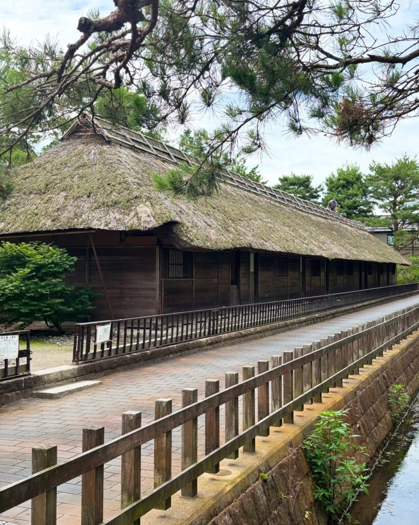 清水園の向かいには、細い道を挟んで足軽長屋があり、当時の暮らしの名残を感じられる佇まいが残っています。