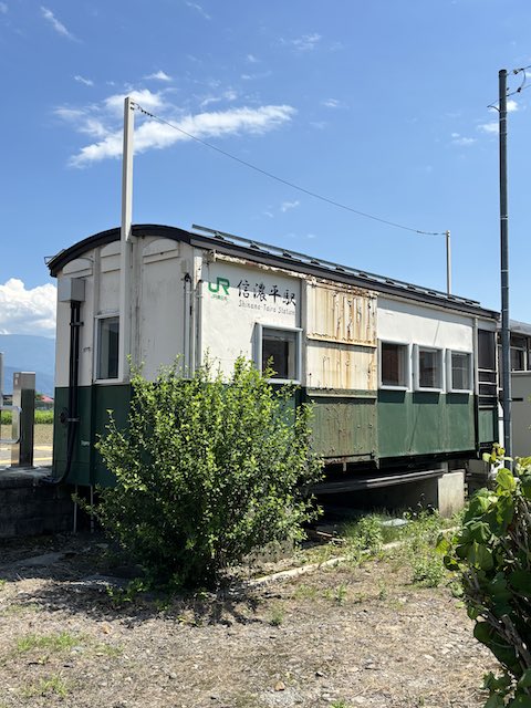長野県飯山市にある信濃平駅は、山あいに佇む小さな無人駅です。 コンテナを活用した駅舎が印象的で、駅前に広がるのはのどかな田園風景。 東京からのひとり旅でこの駅に降り立つと、いつもの慌ただしさとは違う、ゆったりとした時間の流れを感じました。
