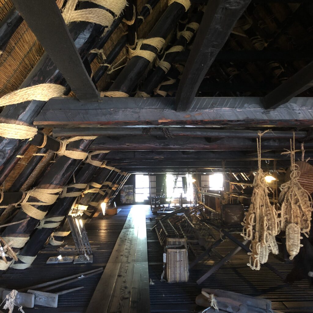 少し汗ばむほどの陽気のなか、青空に浮かぶ合掌造りの屋根が次第に近づいてくると、まるで絵本の世界に迷い込んだようでした。