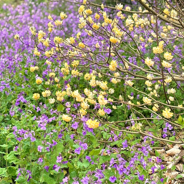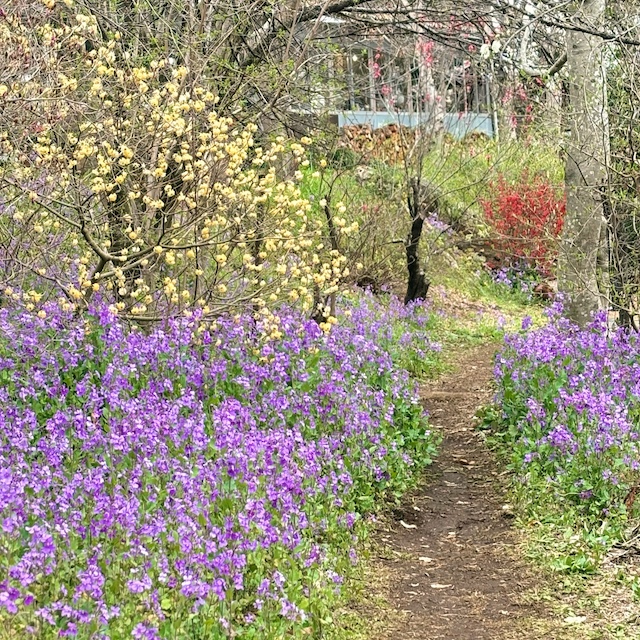 カタクリは控えめな咲き方でしたが、 その代わりに赤いミツマタをはじめ、 さまざまな春の花々が迎えてくれました。