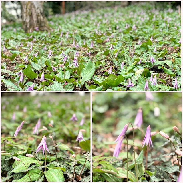 園内ではカタクリの花が見頃を迎えていました。 ただ、前日からの雨の影響で曇り空となり、気温も低かったため、 多くの花は半開きの状態でした。