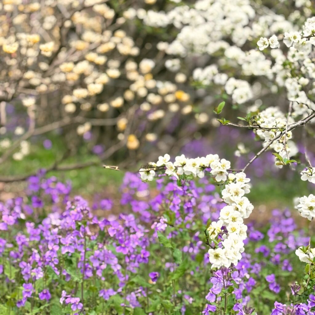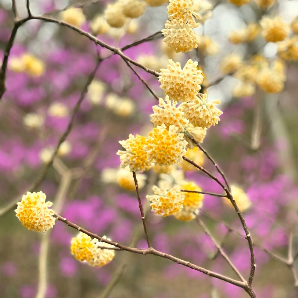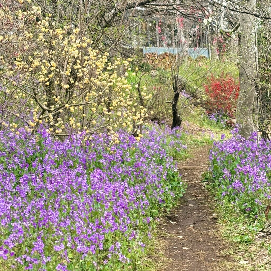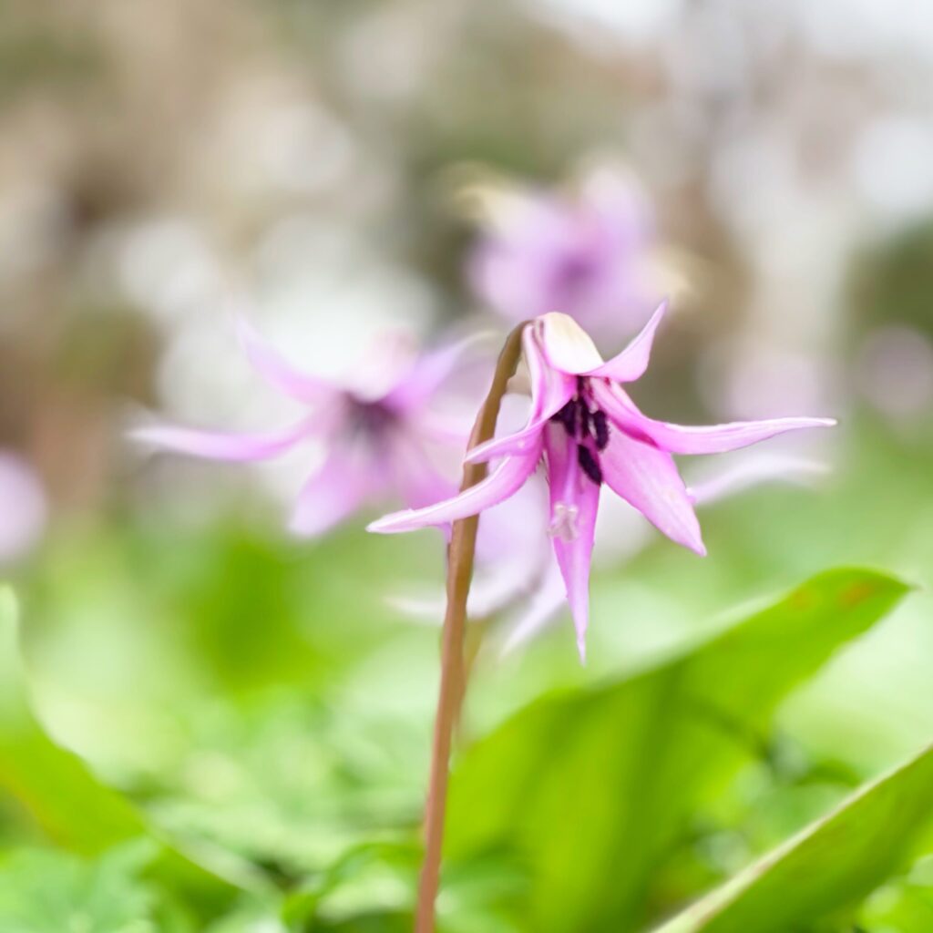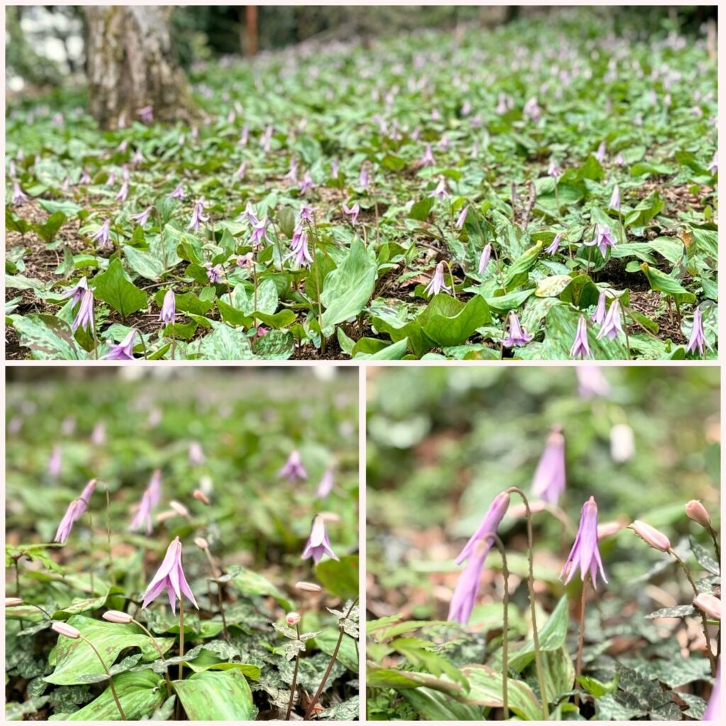 カタクリは少し残念でしたが、赤いミツマタを含め多くの春の花に出会えました。個人が管理している森の中のお花畑のような空間で、まるで妖精がいても不思議でない景色を楽しめました。