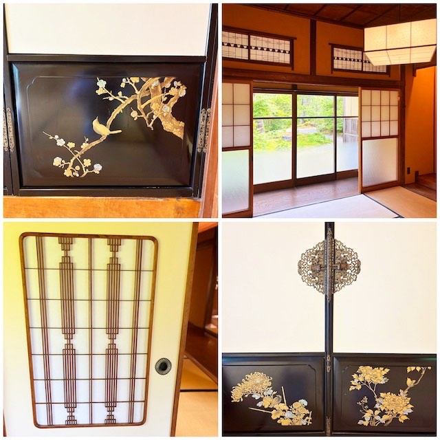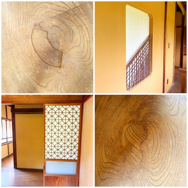 伝統的な日本家屋の中に、アールデコ様式の丸窓やステンドグラスが調和し、