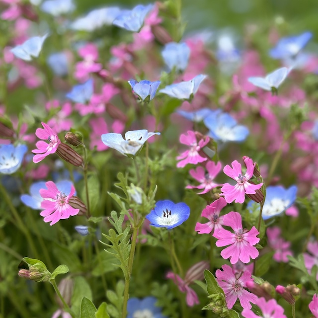 柔らかな風に揺れるネモフィラの青が空の色と溶け合い、まるで夢のような風景。ひとりでのんびり歩くには最高の癒しスポットです。