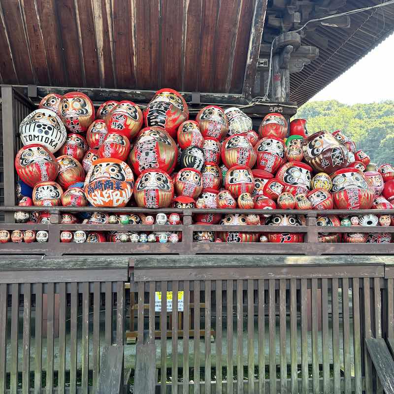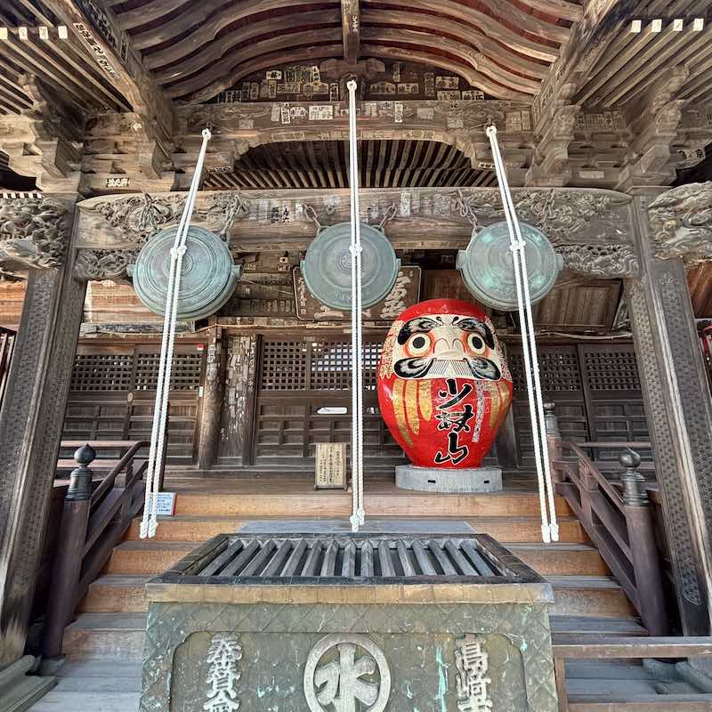 歴史ある寺院の静かな空気と、どこか愛らしいダルマの存在。