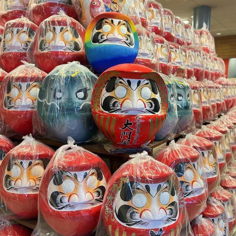 新しい年の幸せと願掛けを込めて、古くなっただるまを寺に納め、感謝の気持ちを込めて供養し、新しいだるまを迎えるという習わしがあることを知りました。