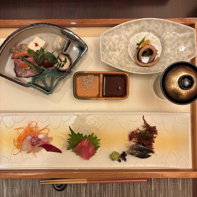 夕食は、期待していた通りの和食のコース。地元食材を使った丁寧な味わいで、どれも優しいおいしさでした。食後には、温泉でゆったりと身体を温め、旅の疲れを癒しました。