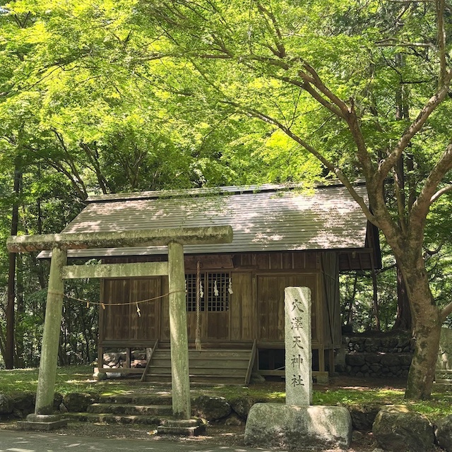美術館へ向かう途中には、森の中にひっそりと佇む「穴澤天神社」もあります。