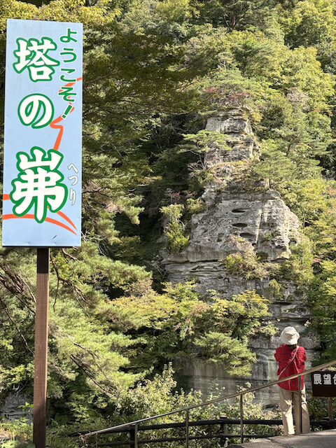 駅から塔のへつりまでは徒歩5分ほど。途中、「熊の目撃情報」の看板を見つけて少し緊張しましたが、カバンの中の鈴を鳴らしながら進みました。