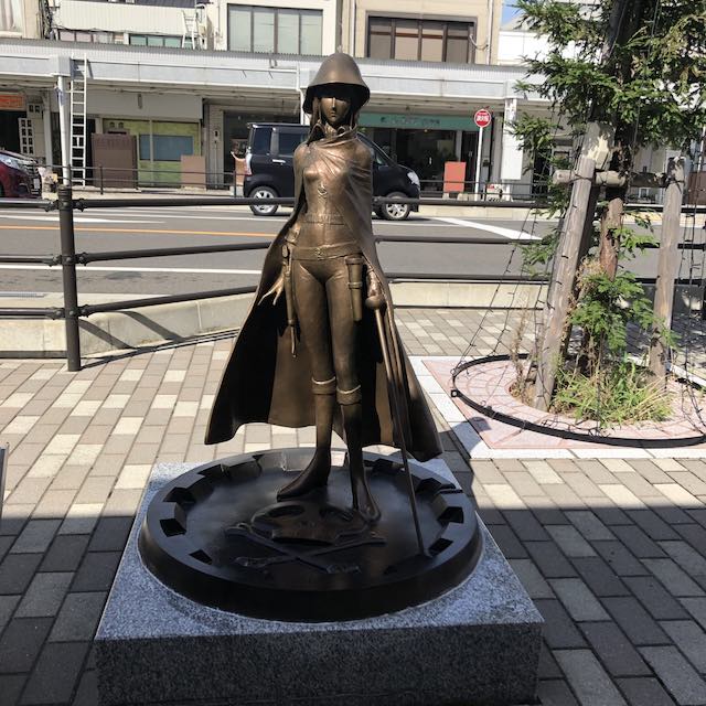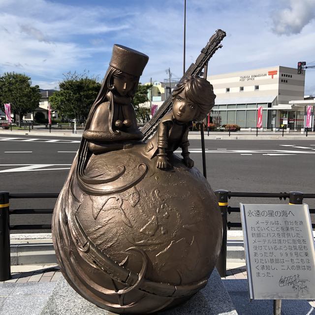 「銀河鉄道999」や「宇宙戦艦ヤマト」のモニュメントが並びます。