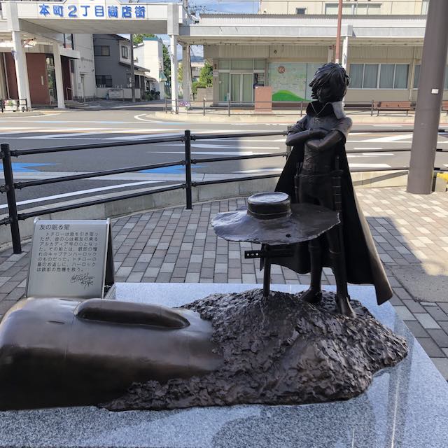 駅から神社へ続くシンボルロードには、漫画家・松本零士さんの作品