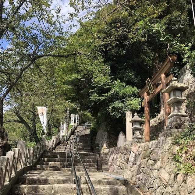 港から徒歩約15分。高台にある金ヶ崎宮へ。