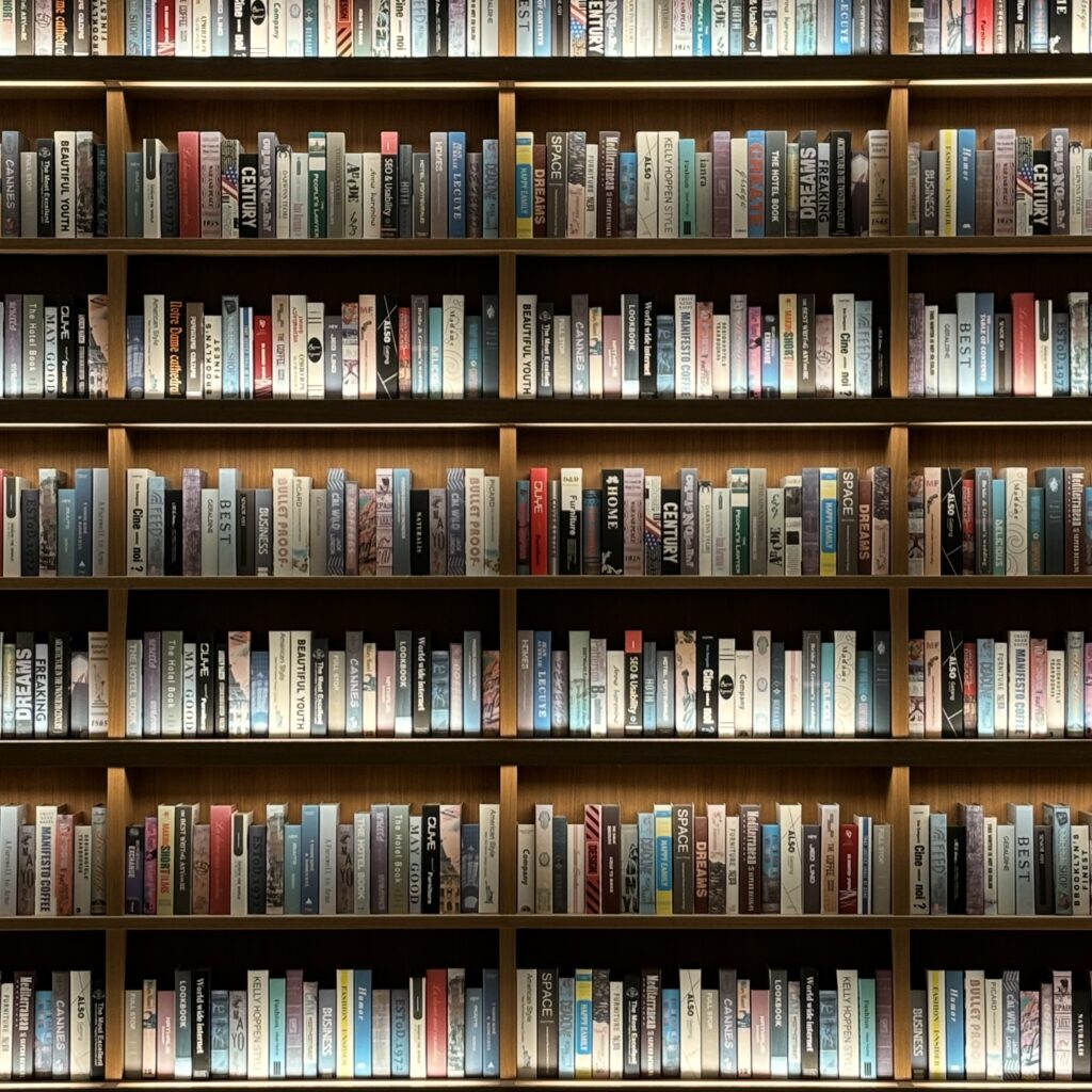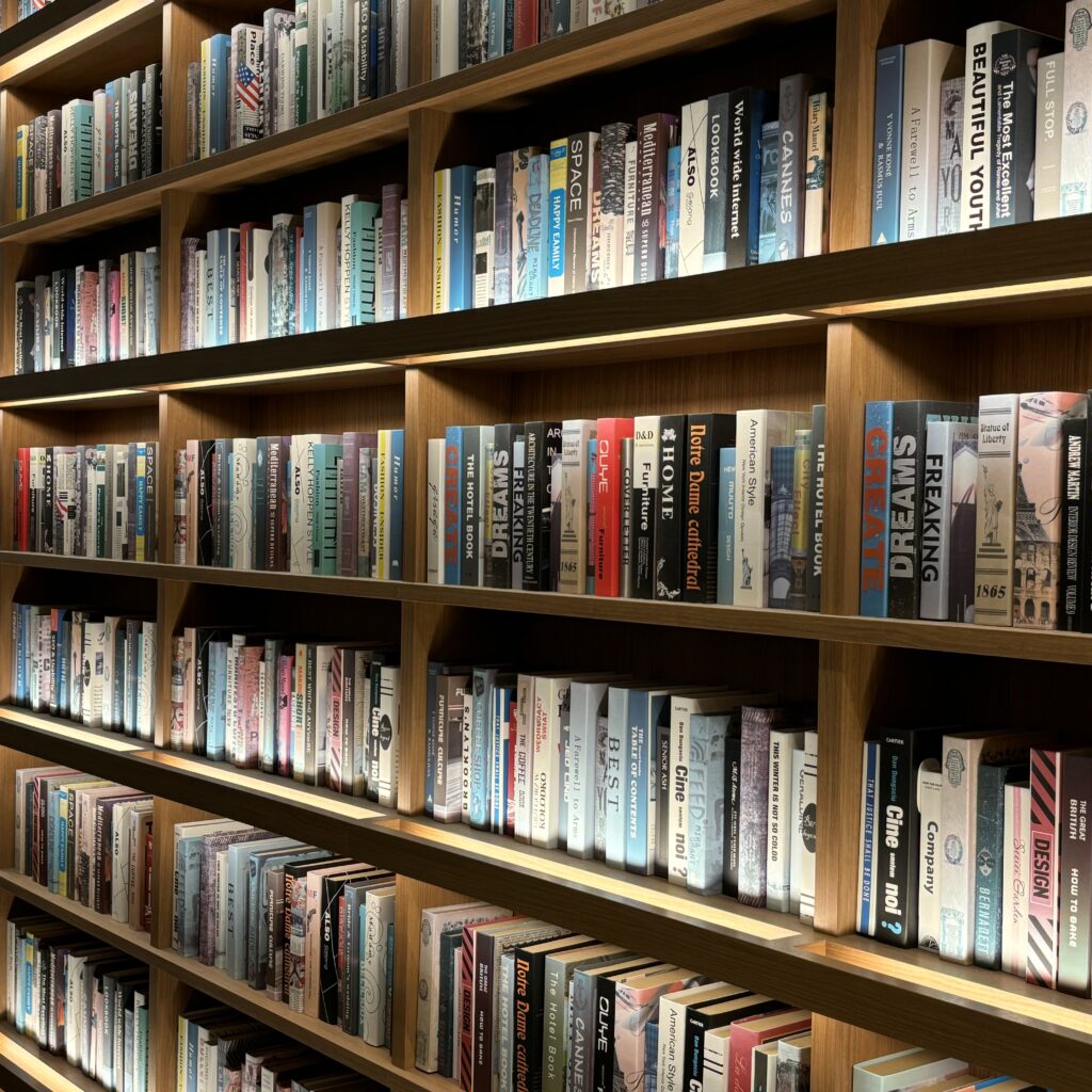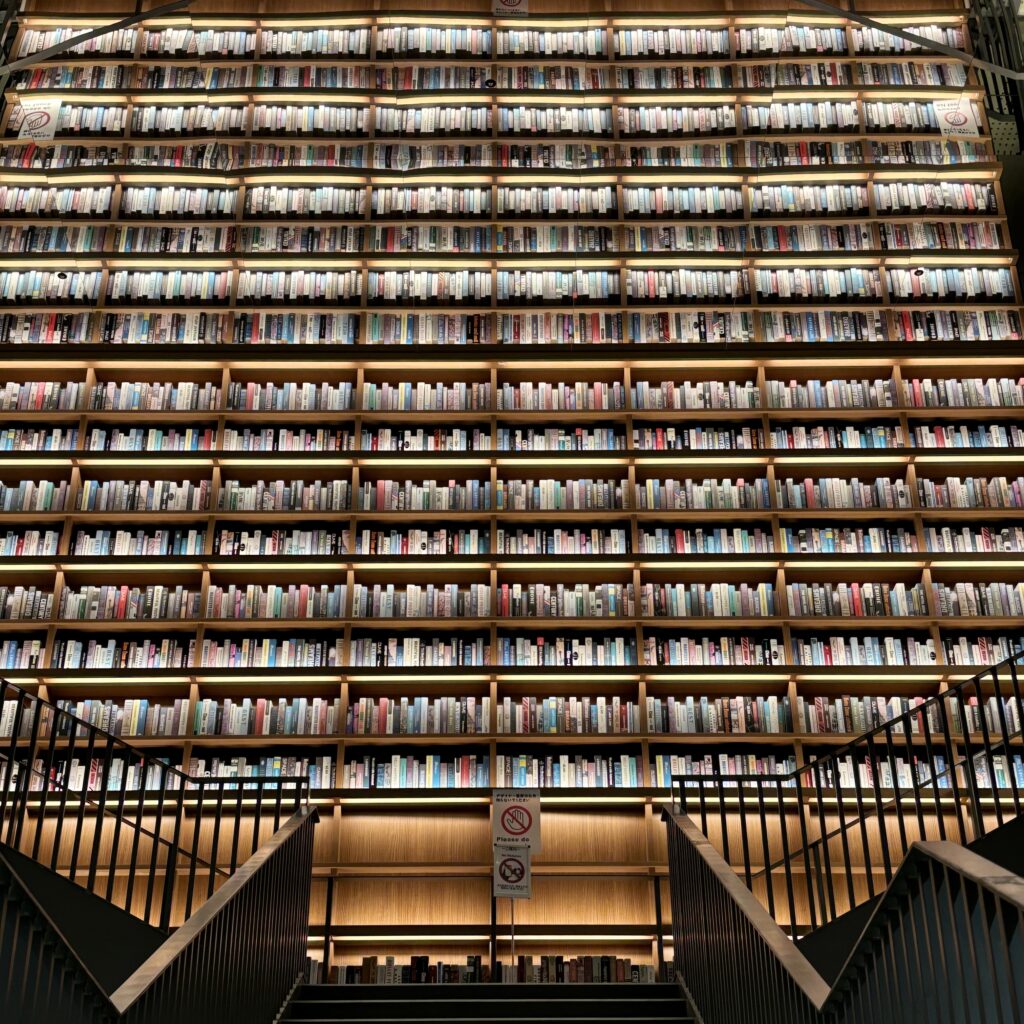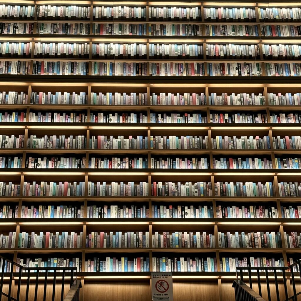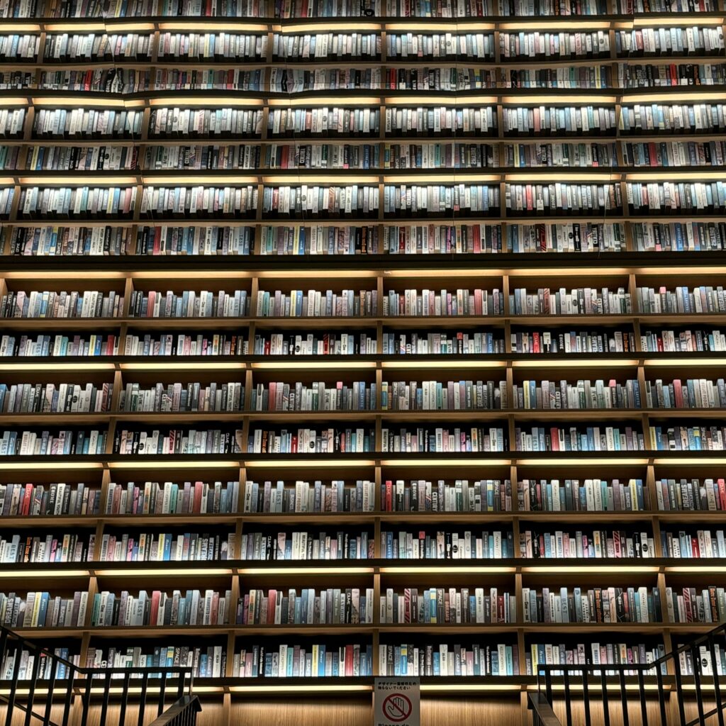 敷地内にあるTSUTAYA BOOKSTORE 則武新町では、天井まで届くような大きな本棚に圧倒されながらも、