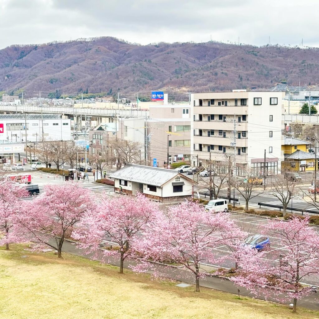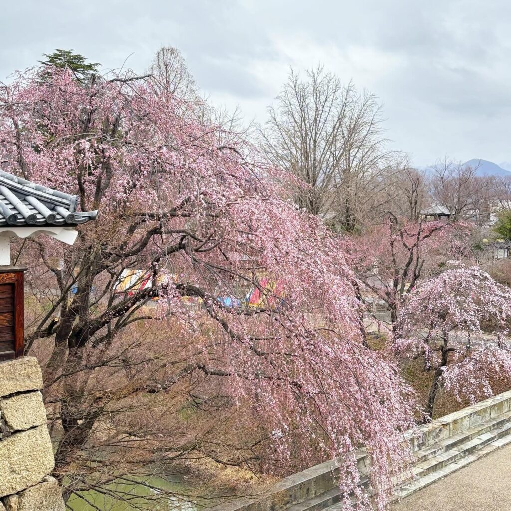 城跡には桜まつりの準備が進んでいて、ソメイヨシノはまだ蕾。でも早咲きの桜や枝垂れ桜がやさしく風に揺れていて、春の始まりを静かに感じる景色でした。