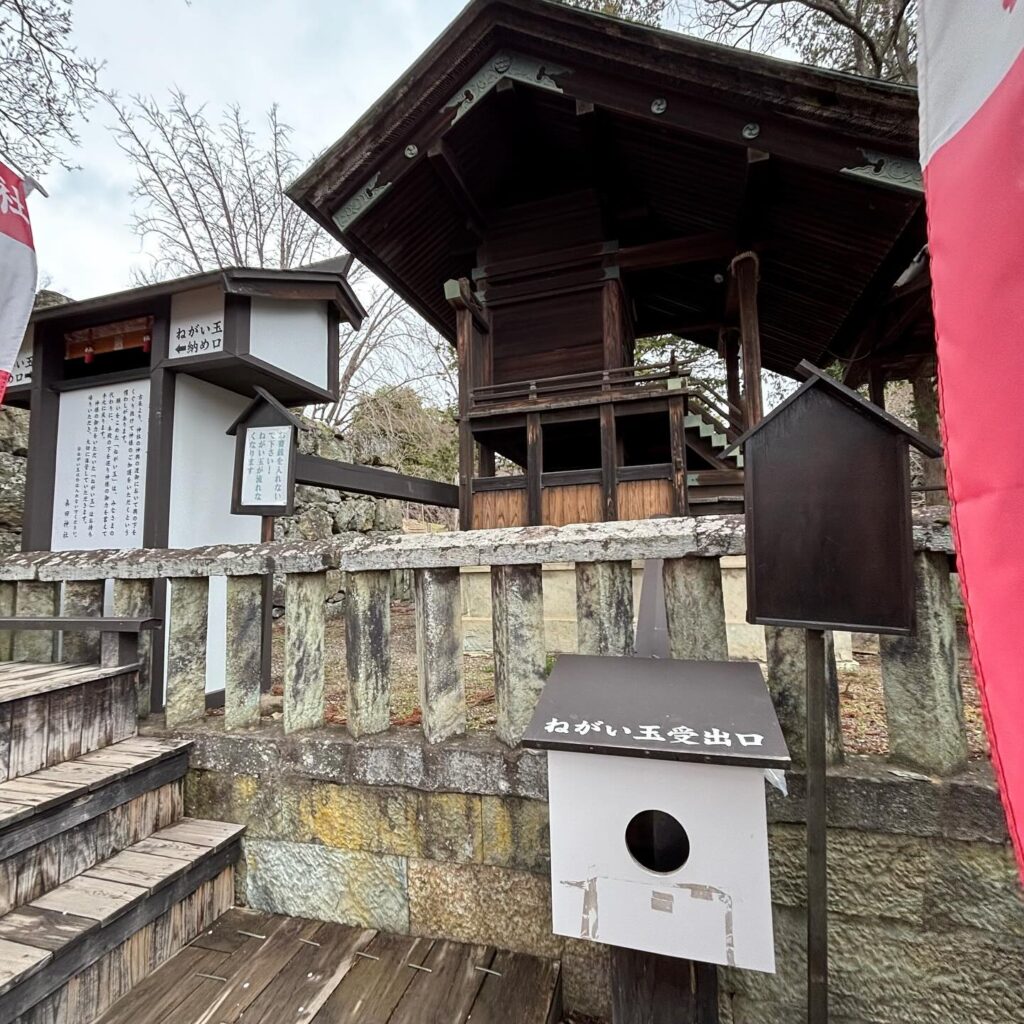 さらに、この神社には「ねがい玉」という珍しい授与品がありました。願い事を書いた玉を納め口へ入れ、出てきた玉を袋に入れて持ち帰るというものです。