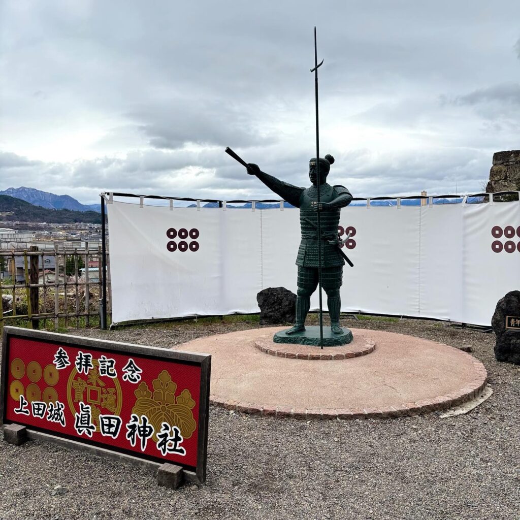 別所温泉から上田駅へ戻り、足をのばして向かったのは上田城跡公園と眞田神社。桜まつり準備中の静かな城下町で、春の気配と真田氏の歴史に触れるひとときを過ごしました。