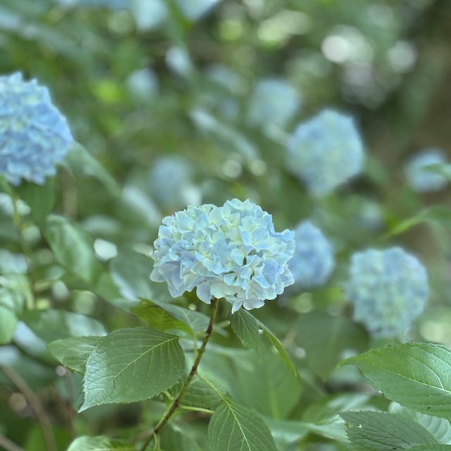 一方で、少し木陰に咲く紫陽花はこれから見頃を迎えるような、やわらかな表情を見せていました。