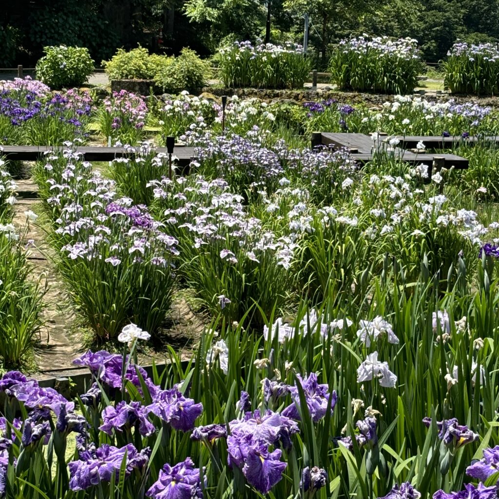 強い日差しの中、咲き誇る菖蒲と紫陽花の共演に癒される、初夏のひとり時間となりました。