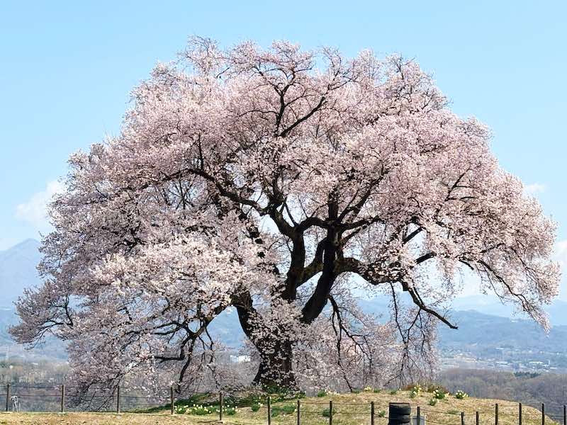 田園の中にぽつんと立つ樹齢約330年の一本桜は、やはり何度見ても特別な存在です。