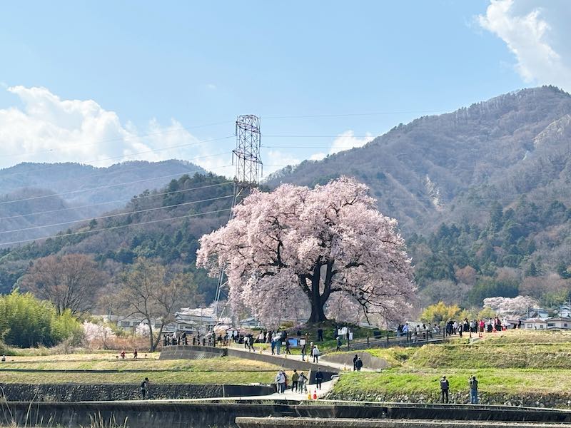 見頃の時期ということもあり人は多く訪れていましたが、神代桜のように人が密集するほどではなく、全体としてはゆったりと鑑賞できる雰囲気でした。