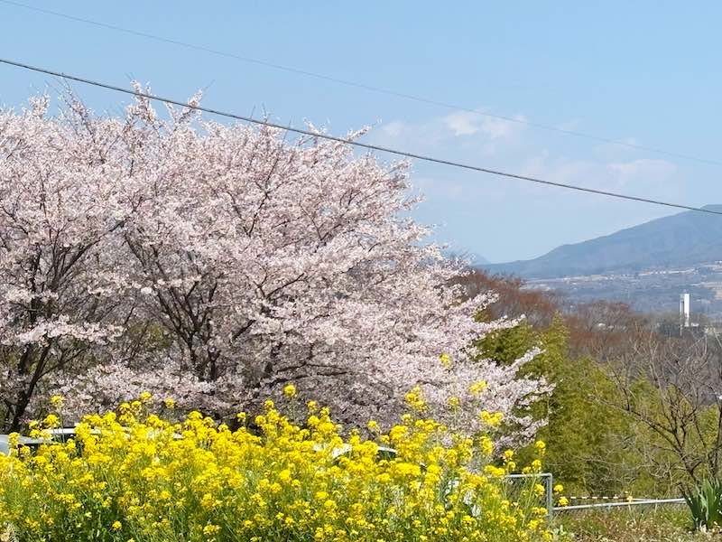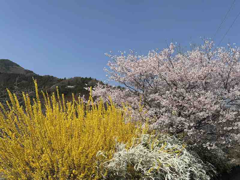 山には桜が点々と咲き、麓にも花が多く、菜の花や雪柳、名前のわからない黄色い花まであちこちで春を告げていました。ひとつの名所を目指して訪れたつもりが、気づけば里山全体の春を歩いていたような時間でした。