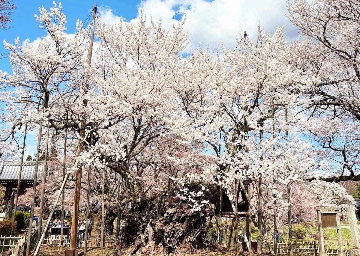 2025年4月。お花巡りのひとり旅で、日本三大桜のひとつ「山高神代桜(やまたかじんだいざくら)」を見に、山梨県北杜市の實相寺へ向かいました。