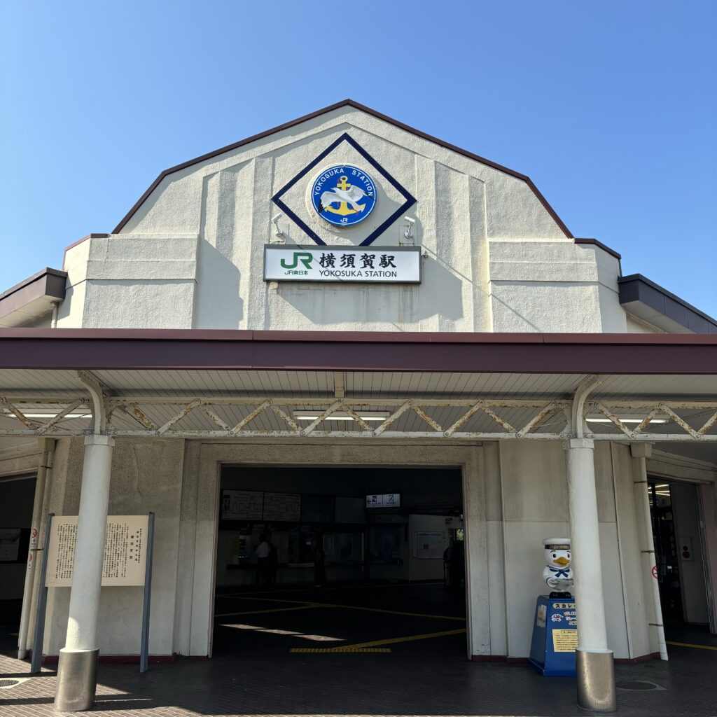 横須賀駅に初めて降り立ちました。駅は思ったよりこじんまりしていましたが、マリンっぽい雰囲気のある駅舎で、駅前のヴェルニー公園を散策しながら集合場所へ向かいました。