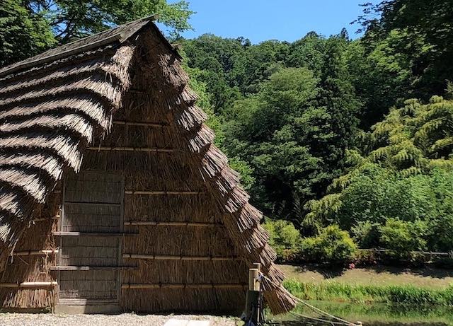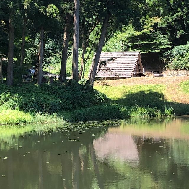 緑に囲まれた玉泉湖のほとりを歩きながら、氷が取り出された後の氷室を眺めました。